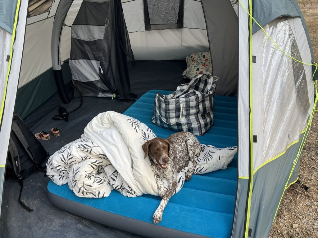 Les vacances « roots » sont finies ! On avait prévu une dernière semaine pour faire plaisir à Manon. On y est ! On range une dernière fois la tente et la remorque, puis direction Portiragnes pour un grand camping avec toboggans, piscine et mini-club ! On a un mobil-home très sympa avec vue sur un étang (et aucun moustique, merci les insecticides …). Manon est ravie ! On a tous les jours un programme intense : mini-disco, mini-club, piscine et toboggans (qui lui ont permis d’avoir beaucoup moins peur de l’eau, maintenant aucun souci pour concours de tête sous l’eau !). On arrive même à aller au marché, à essayer le padel et à aller à la plage pour chiens avec et sans Manon ! Quel bonheur de nager avec Cookie. Sinon on ne prend pas la voiture de la semaine, et ça fait du bien aussi.